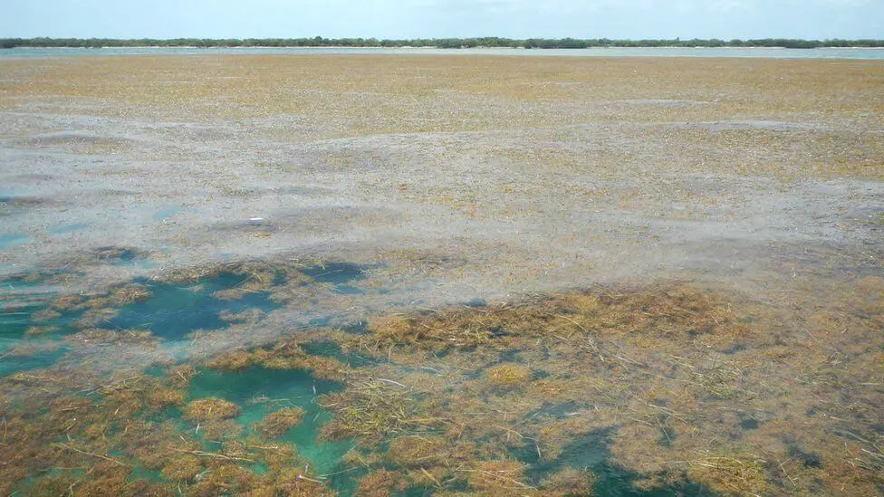 Sargassum also brings ecological problems that hurt the tourism economy as it’s hard to swim in when it washes up on beaches. In the open ocean, massive groups of it keep sunlight from reaching coral reefs, and as it decays, the seaweed releases compounds that harm marine life.