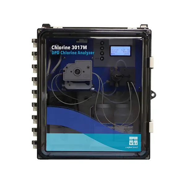 The YSI 3017M Chlorine Analyzer uses proven DPD methodology to provide accurate and reliable free chlorine or total chlorine measurements in drinking water and final effluent wastewater samples. The 3017M can also be used in aquatic habitats and industrial cooling tower applications.