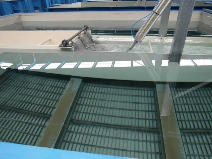 The Adsorption Clarifier applies an upflow process that utilizes as little as 10% of the space of a conventional clarifier. Chemically dosed water enters the plant and flows upward through the granular buoyant media that
