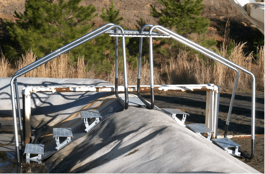 One of the most common accidents in construction sites is fall from stairs and this often leads to serious injuries. To increase the safety standards of stairs, the IEC stair design does not include risers that are too steep, treads that are too narrow or uneven riser heights and tread depths. Construction safety stairs can be customized to use on any kind of slope and length and reduces slip and fall hazards on your site by eliminating foot traffic on slippery liner surfaces. Safety Stairs can also be placed directly on top of high-quality geomembrane liners without puncturing them. Each step can be adjusted individually, so that the entire system can adapt to any slope angle.