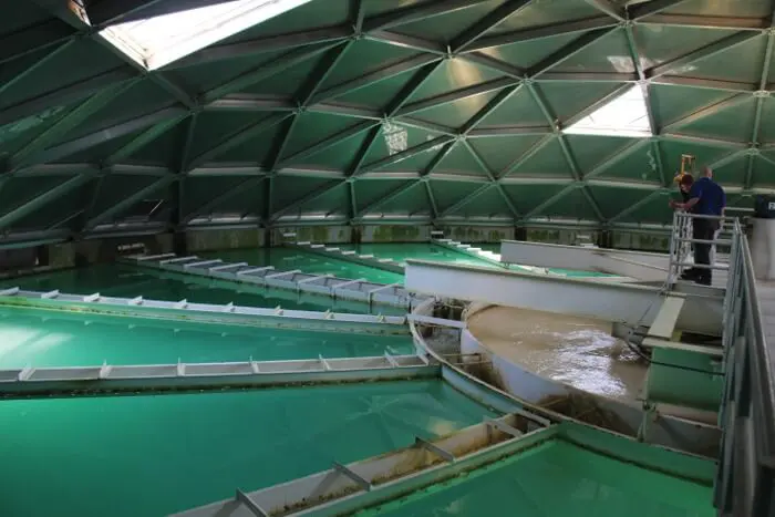 The CONTRAFLO is solids contact clarifier with a high rate internal recirculation by a marine propeller that thoroughly mixes new chemicals and previously formed precipitates with raw water to maximize chemical efficiency and create large heavy sludge particles that settle rapidly