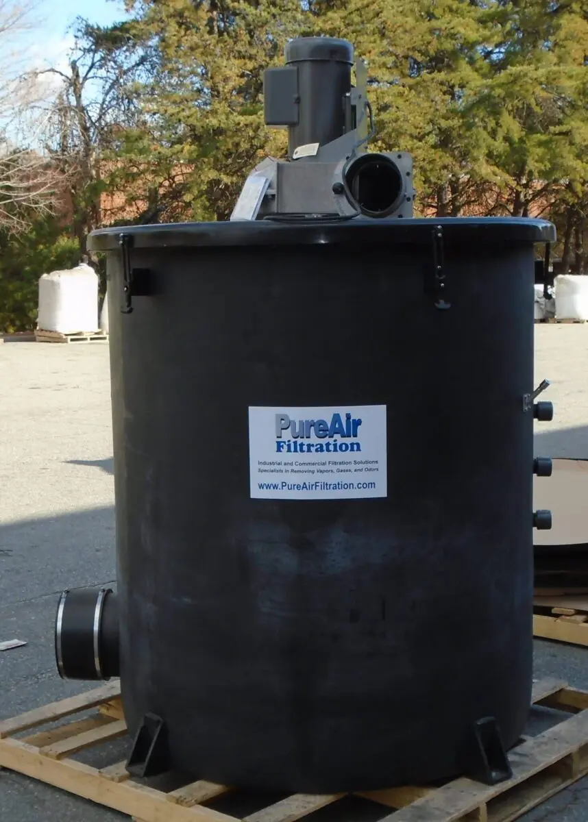 This system provides a reasonable inexpensive air purification system for small flow odour air streams ranging in volume without prefiltering or mist/grease elimination, 50 to 1000 CFM. The PureAir DS systems maybe connected to an exhaust vent and used for passive odor control or environmental emission applications. Drum scrubbers do not include prefilters, final filters, or mist/grease eliminators. Larger systems will include a blower to ensure active purging of contaminants.