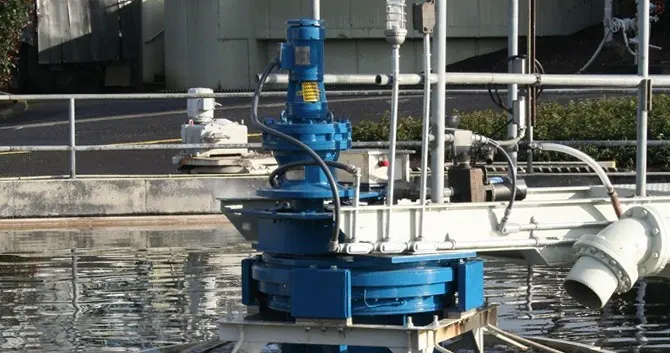 The retrofit drive is located at the center of the clarifier or thickener tank. It replaces the original drive and turns the clarifier or thickener rakes.