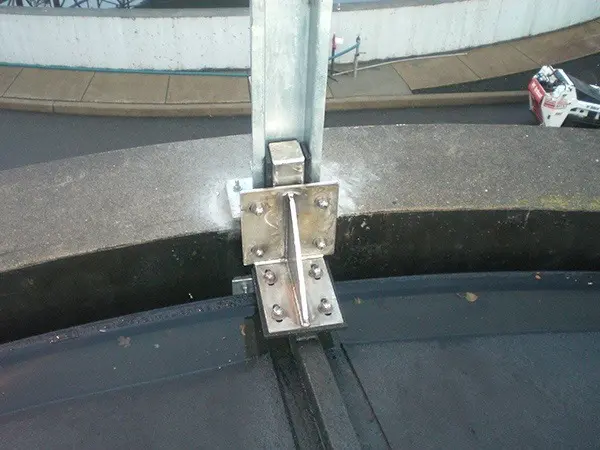 Slide guides allow the cover to travel above the tank wall, thus increasing gas storage at high liquid levels. Ultra-High Molecular Weight (UHMW) polyethylene slide plates, used on three sides of the structural steel tube, prevent covers from tipping and binding as they move vertically within the tank. They resist wind, seismic, and unbalanced loads in both radial and tangential directions. The durable, low-friction UHMW surfaces remove the need for lubrication, enabling maintenance-free operation.