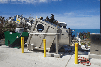 Any rocks that can pass through the discharge hose from the truck are easily removed by the screen and auger. Rags and large debris are no problem for the BEAST. The dual drive feature allows the screen and auger to rotate independently and adapt to the debris load. The drum screen is at a 25° angle and rotates slower than the auger for better capture. The auger rotates faster to quickly remove the debris. The screen drive is located at the top of the drum and eliminates support arms at the influent end of the drum. This provides a full, unobstructed path for the flow to enter the drum.