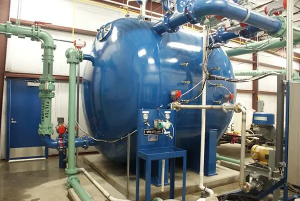 Vertical pressure filters consist of a pressure vessel with an overdrain system for distribution of influent water and collection of backwash waste.