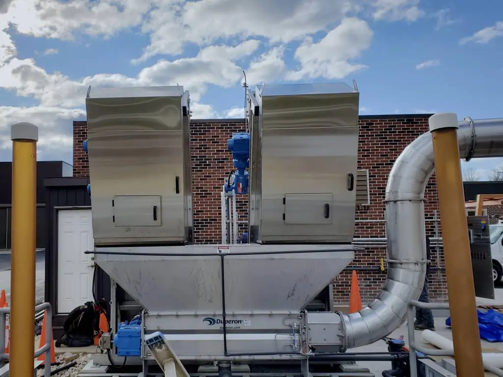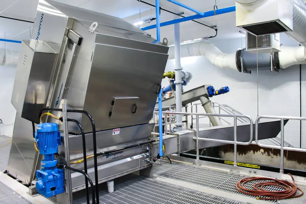 The Duperon Washer Compactor is equipped with flood washing ports to clean screenings, self-regulating compaction zones to ensure consistent pressure, and a positive displacement system that moves debris forward for effective processing. It is capable of up to 84% volume reduction, 30%-60% dry solids, and a 60%-70% weight reduction. Additionally, this system helps reduce odor and ensures compliance with landfill standards by efficiently handling odor removal and fecal content in the collected solids.